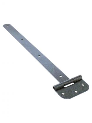 Петля-стрела - это крепежный механизм, который используется для установки ворот, калиток, реже - дверей различной массы. Отличаются от классических петель своей надежностью за счет возможности распределения нагрузки по всей длине петли, что существенно снижает износ закрывающего/открывающего механизма. Крепится как саморезами, так и сквозным болтовым соединением с затяжными контр-гайками. Характеристики. Тип: петля - стрела. Материал: сталь. Покрытие: полимерное. Направление открывания: универсальное. Назначение: для деревянных дверей. Цвет: серый. Преимущества. Изготовлена из высокопрочной стали, которая обеспечивает надежность и долговечность изделия. Благодаря простой и понятной конструкции, петлю легко установить даже без специальных навыков. Подходит для элементов различной формы и размеров, не портит внешний вид конструкции.