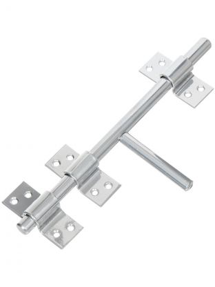 Засов универсальныйПрименяется для надежной фиксации дверей, калиток и ворот в закрытом положении. Оснащен усиленным ригелем из калиброванного круга диаметром 13 мм с накладкой под навесной замок. Засов устанавливается для дополнительной защиты своего дома от нежелательных гостей. Характеристики. Тип: засов. Назначение: универсальный. Материал: сталь. Покрытие: хром. Тип монтажа: накладной. Цвет: хром. Преимущества. Отлично фиксирует дверь в закрытом состоянии. Подходит для дверей различной толщины, что делает его удобным для использования в разных условиях. Легко устанавливается и не требует специальных навыков для ее использования. Обеспечивает дополнительную защиту от проникновения.