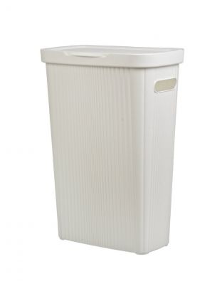 Габариты: ширина 44 см, глубина 35.5 см, высота 52 см. Объём — 55 литров. Прямоугольная форма позволяет компактно разместить корзину даже в небольшой ванной.