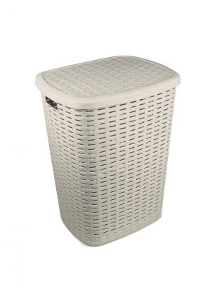Корзина для белья 60 л Violet Ротанг — вместительная плетёная корзина из белого пластика с ручками и крышкой для стильного хранения белья дома, на даче или в ванной.