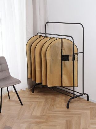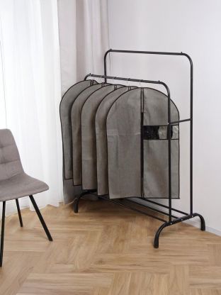 Чехол рассчитан на ширину 60 см и высоту 90 см — это оптимально для хранения платьев, курток, пиджаков, рубашек. Подходит для стандартных вешалок.