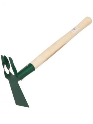 Мотыжка комбинированная, черенок деревянный, с 3-х зубыми витыми граблями