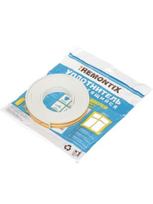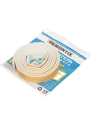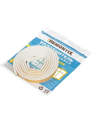 Уплотнитель E, самоклеящаяся основа, 9х4 мм, 12 м, белый, Remontix, REMEW00012