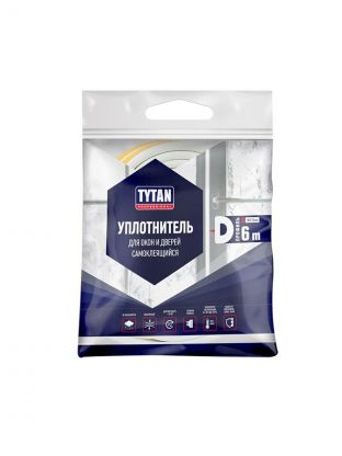 Уплотнитель D, самоклеящаяся основа, 9х7.5 мм, 6 м, черный, Tytan, 19729
