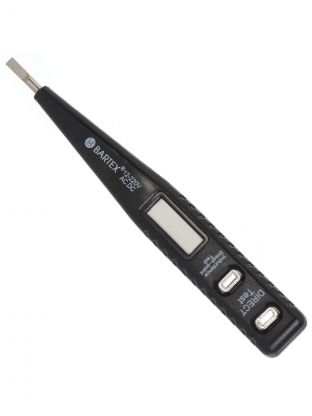 Отвертка-пробник — простой и распространенный инструмент для определения наличия напряжения в электрической сети. Внешне инструмент напоминает обычную отвертку, но имеет ряд отличий. Отвертка-пробник Bartex имеет достаточно крупный пластиковый корпус, на котором находится кнопка-сенсор и небольшой жидкокристаллический дисплей. Щуп отвертки имеет вид плоского шлица.