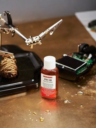 Флюс для пайки REXANT ЛТИ-120 с кисточкой — идеальное решение для качественной и быстрой пайки радиоэлектроники и печатных плат. Низкотемпературный состав обеспечивает прочные соединения, не требует смывки после пайки, а остатки создают защитный слой. Удобная кисточка облегчает нанесение, а безопасная формула не проводит ток. Объем 30 мл подходит для домашних и дачных работ.