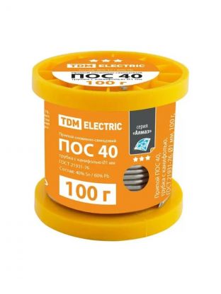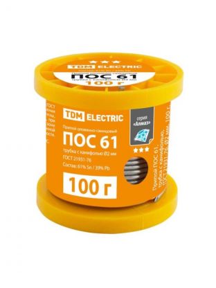 Припой POS40, с канифолью, TDM Electric, Алмаз, 100 г, диаметр 1 мм, катушка, ГОСТ 21931-76, SQ1025-03