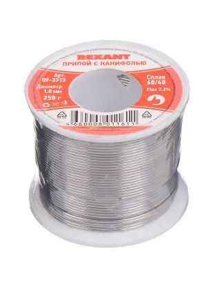 Припой с канифолью Sn60% Pb40% Flux 2.2%, Rexant, 250 г, диаметр 1 мм, катушка, 09-3313