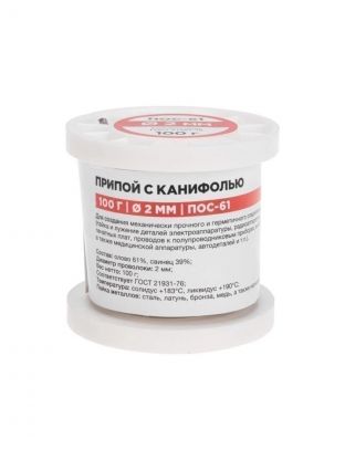 Припой с канифолью ПОС-61 Sn61% Pb39%, Rexant, 100 г, диаметр 2 мм, катушка, 09-3173