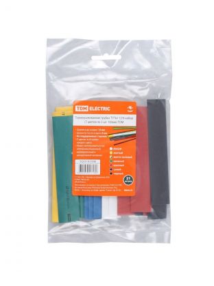 Термоусадочная трубка 12/6 мм, 21 шт, набор, 7 цветов по 3 шт, 100 мм, TDM Electric, SQ0518-0506