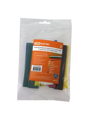 Термоусаживаемая трубка 14/7 мм, 21 шт, набор, 7 цветов по 3 шт, 100 мм, TDM Electric, SQ0518-0507