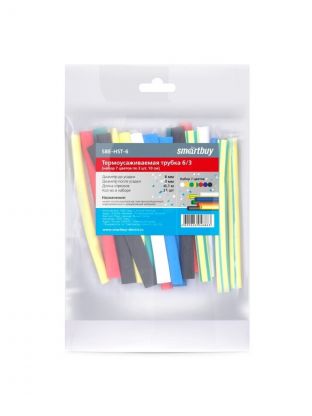 Термоусаживаемая трубка 6/3 мм, 21 шт, набор, 7 цветов по 3 шт, 100 мм, Smartbuy, SBE-HST-6