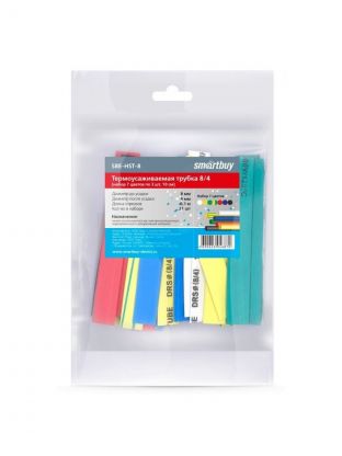 Термоусаживаемая трубка 8/4 мм, 21 шт, набор, 7 цветов по 3 шт, 100 мм, Smartbuy, SBE-HST-8