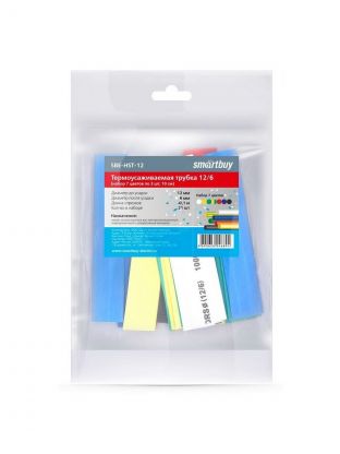 Термоусаживаемая трубка 12/6 мм, 21 шт, набор, 7 цветов по 3 шт, 100 мм, Smartbuy, SBE-HST-12