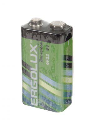 Батарейка Ergolux, 9V (6F22), Zinc-carbon, солевая, 9 В, спайка, 12443