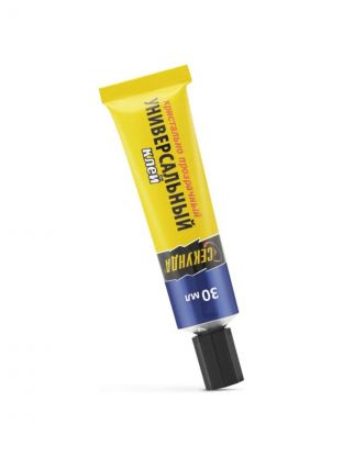 Универсальный бытовой клей является высокопрочным, высокоадгезионным, водостойким и быстро сохнет. Образует жесткий маслобензиностойкий шов.