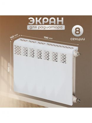 Экран рассчитан на радиаторы длиной до 1200 мм и высотой до 600 мм. Перед покупкой измерьте батарею, чтобы подобрать оптимальный вариант.