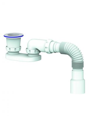 • Пластиковый патрубок для сифона имеет два отвода для подключения слива от стиральной и/или посудомоечной машины;