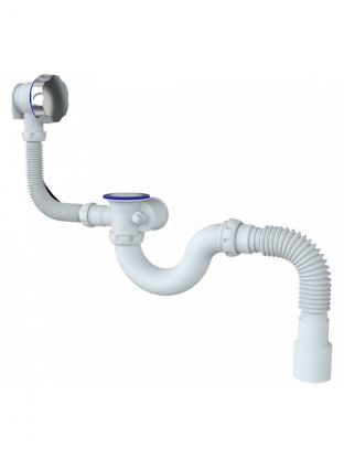 Сифон 1 1/2"х40, с полуавтоматическим сливом (латунь/хром)-переливом (латунь/хром), для ванн и глубоких душевых поддонов. Конструкция сифона позволяет прочищать сифон, не демонтируя его. Отвод в канализацию гибкая труба 40-40/50..