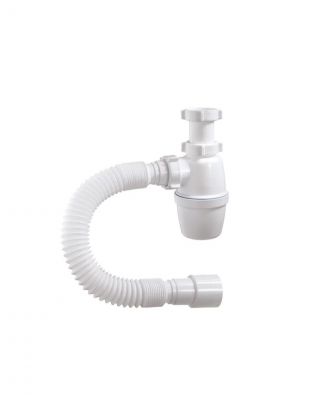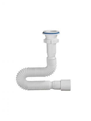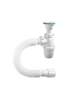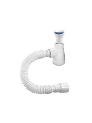 Гофрированный сифон – обладает простой конструкций, его часто используют, если под мойкой мало свободного пространства. Система может принять любую форму, ведь представлена гофрированной трубой, она легко складывается и раскладывается. Это компактный сифон для кухонной мойки.