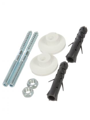 Комплект применяется для крепления настенных умывальников в полнотелых строительных материалах типа: бетон, полнотелый кирпич. Крепежные элементы изготовлены из материала, устойчивого к воздействию химических веществ.