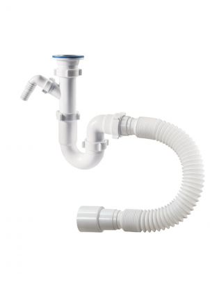 Сифон для мойки, трубный, 1" 1/2, 40х40/50, полипропилен, с выпуском, прямоточный с отводом, с гофрой, Orio, S-41059