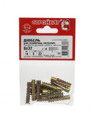 Дюбель для газобетона, металл, диаметр 6х32 мм, 14 шт, Стройбат, 271831