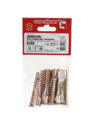 Ищете надежное решение для крепления конструкций к газобетону? Металлический дюбель диаметром 8х60 мм от бренда Стройбат станет идеальным выбором. Этот товар произведен в Китае и поставляется в упаковке из 10 штук, что обеспечивает экономичность и удобство использования. Благодаря своей четырехсегментной распорной части с внешними зубцами, дюбель гарантирует прочное и надежное крепление.