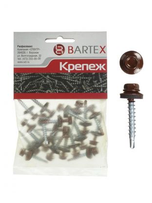 Саморез кровельный, диаметр 4.8х38 мм, 15 шт, шоколадно-коричневый, пакет, Bartex