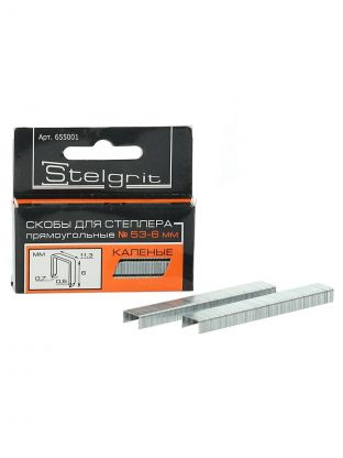Скоба для мебельного степлера, 6 мм, 1000 шт, закаленная, тип 53, Stelgrit, 655001
