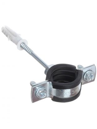 Хомут для крепления трубы, 3/4", 25-28 мм, сталь, со шпилькой и дюбелем, СантехКреп, 1.11.3