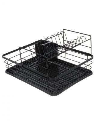 Сушилка для посуды, металл, 2 яруса, с поддоном, черная, A340097