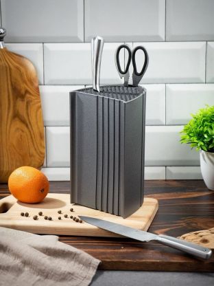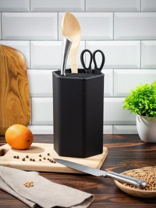 Подставка для ножей и ножниц - нужная вещь для любой кухни. Приборы будут в идеальном состоянии только если их держать в специальной подставке под ножи. Универсальная подставка для ножей и ножниц позволит решить вопрос с местом для хранения приборов. Благодаря ей ножи всегда будут в доступности и не придется искать нужный по всем ящикам.