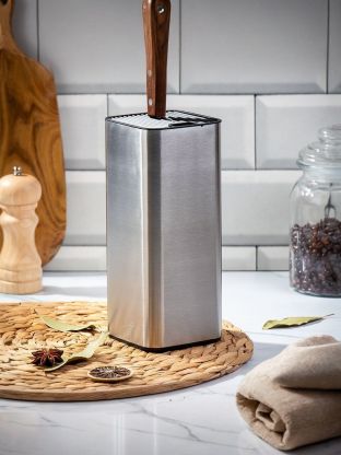 • Конструкция подставки разработана таким образом, чтобы вмещать ножи и другие кухонные принадлежности любых размеров и материалов - от традиционных металлических до современных керамических.