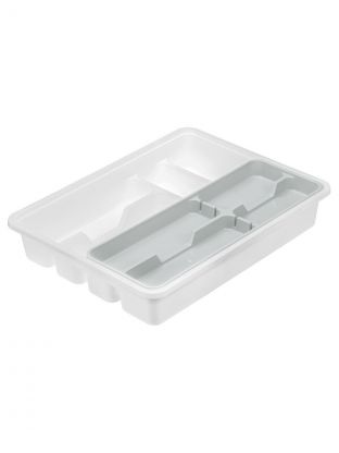 Размер лотка-вкладыша — 31х40х7 см. Он рассчитан на стандартные и глубокие ящики, подходит для большинства кухонных и офисных систем хранения.