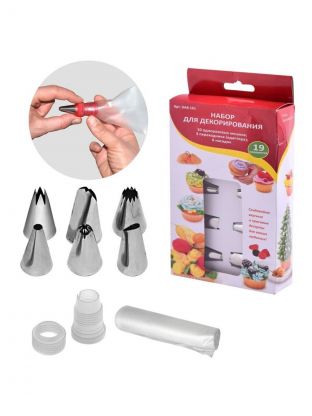 Набор предназначен для декорирования кондитерских изделий и выпечки. С помощью этого набора Вы сможете создавать из крема и глазури цветы, вензеля, узоры и фигурки не хуже профессиональных кондитеров. Украшайте с помощью набора для декорирования пирожные, печенье и торты разноцветными кремами или закуски густыми соусами. Фантазируйте и проявляйте свое творчество, привлекайте к украшению детей – совместное украшение может стать Вашей семейной традицией. Набор также станет отличным подарком Вашим родным и близким.