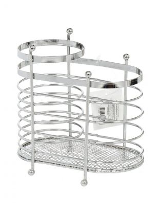 Подставка используется для сушки и хранения столовых приборов, кухонных лопаток и инструментов. Она изготовлена из стальной хромированной проволоки. Такая подставка также может стать оригинальным элементом сервировки обеденного стола или практичной сушкой для ложек, вилок, ножей.