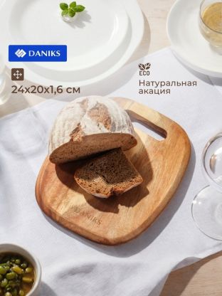 Доска разделочная акация, 24х20х1.6 см, с ручкой, прямоугольная, Daniks, CB27924A