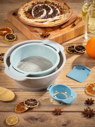 Превратите сложный и трудоемкий процесс замешивания теста в удовольствие. Набор Daniks позволит Вам значительно сократить время просеивания муки. Модель не займет много места на Вашей кухне благодаря тому, что все модули компактно хранятся в большой миске. Сдержанные пастельные оттенки будут радовать глаз при каждом использовании.
