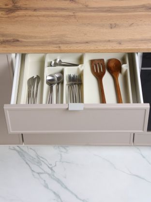 • Раздвижная конструкция — легко подстраивается под размеры вашего ящика, экономит место и сохраняет порядок