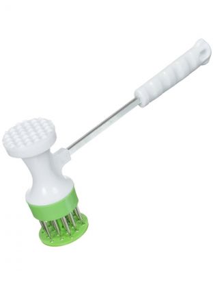 Устройство 2 в 1 включает тендерайзер и молоток. Важным их достоинством является то, что разрыхленное и отбитое мясо лучше сохраняет свои вкусовые качества, оставаясь при жарке мягким и сочным, при этом готовится значительно быстрее.
