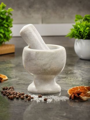 Ступка каменная с пестиком изготовлена из мрамора и предназначена для измельчения специй. Поскольку мрамор является природным материалом, натуральный камень имеет индивидуальный орнамент, поэтому оттенок может отличаться от представленного на фотографиях. Так же может отличаться вес товара. В современной кухне качественная ступка является необходимым помощником. Изысканная мраморная ступка - не только украшение интерьера кухни. Попробовав раз специи, растертые в ступке, вернуться к использованию готовых просто невозможно, настолько ощутима разница. Отказ от использования готовых молотых приправ и начало работы со ступкой - настоящий переход на новый уровень для каждого, кто любит готовить.