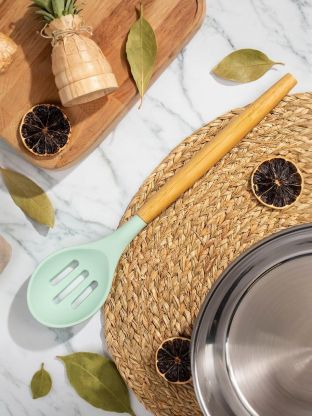 Стандартная длина — удобно держать в руке, рабочая часть оптимальна для разминания средних и крупных порций овощей. Материал — нейлон, цвет — лайм, предусмотрена навеска для хранения.