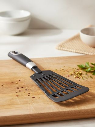 Чем удобна силиконовая лопатка с прорезями при приготовлении пищи?