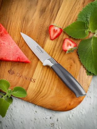 Нож Daniks изготовлен из высококачественной нержавеющей стали. Универсальный кухонный нож, который подойдет для нарезки мяса, любых типов овощей, фруктов, сыров и других продуктов. Ручка сделана из пластика, нож лежит в руке удобно и не скользит.