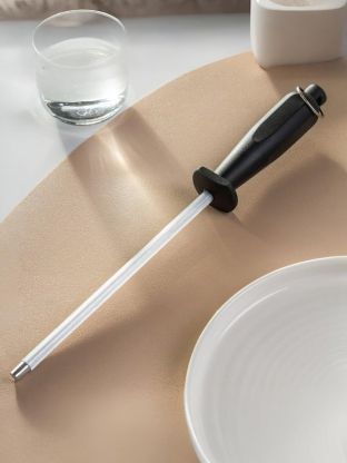 Точилка-мусат для ножей из нержавеющей стали длиной 30 см — выбор для поддержания идеальной заточки кухонных ножей. Мусат Y4-9586 помогает быстро и эффективно восстановить остроту лезвий, делая процесс приготовления пищи удобнее и безопаснее. Прочный материал обеспечивает долгий срок службы и легкость в уходе. Оптимальная длина подходит для большинства ножей, что делает инструмент универсальным для кухни.
