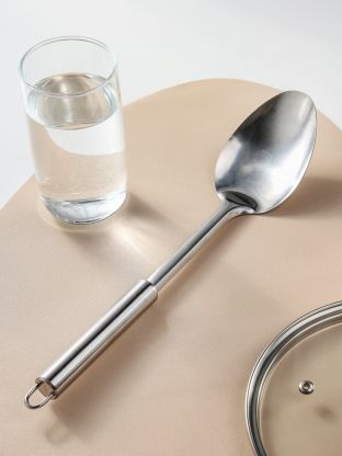 Поварская ложка Atmosphere Practic 30 см из нержавеющей стали — долговечный инструмент для кухни, который удобно мыть в посудомоечной машине. Выбор для тех, кто ценит практичность и стиль.
