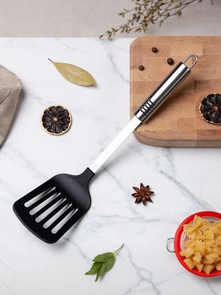 Лопатка кулинарная нейлон, с прорезями, навеска, черная, Daniks, Пасто, YW-KT71B-3