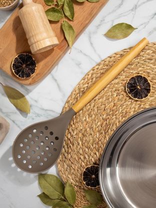 Ложка кулинарная из акации Daniks — идеальный выбор для тех, кто ищет безопасную и долговечную кухонную утварь. Натуральное дерево акации известно своей прочностью, устойчивостью к деформации и минимальным впитыванием запахов. Благодаря прорезям ложка удобна для сервировки гарниров, овощей и пасты, а также для перемешивания соусов и супов.