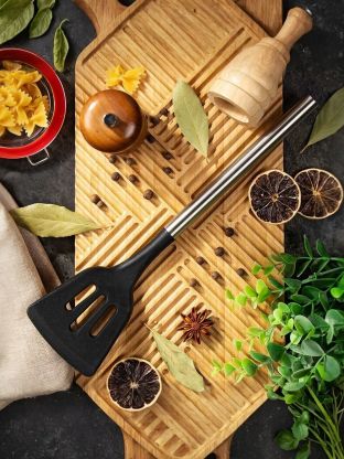 Ложка отлично подходит для перемешивания, сервировки гарниров, овощей, пасты и блюд с соусом. Прорези позволяют быстро сливать лишнюю жидкость, не повреждая антипригарное покрытие.